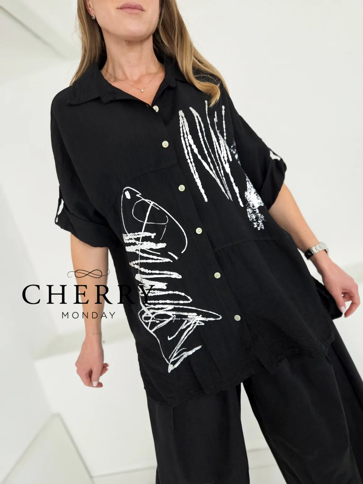 Lahkotna srajca s srebrnim potiskom